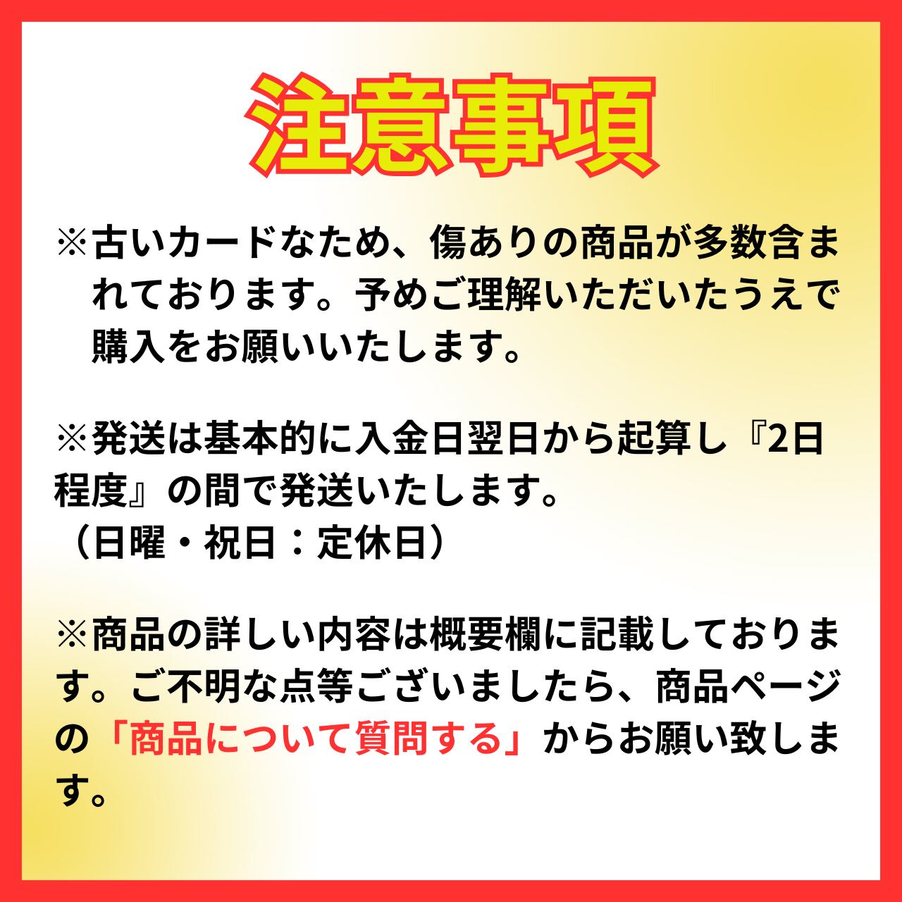 カード状態に関しましてはトラブル回避の為、美品含め一律プレイ用(中古品)扱いとさせて頂きます。古いカードのため初期傷・白カケ・スレ、軽度の折れ等がございます。